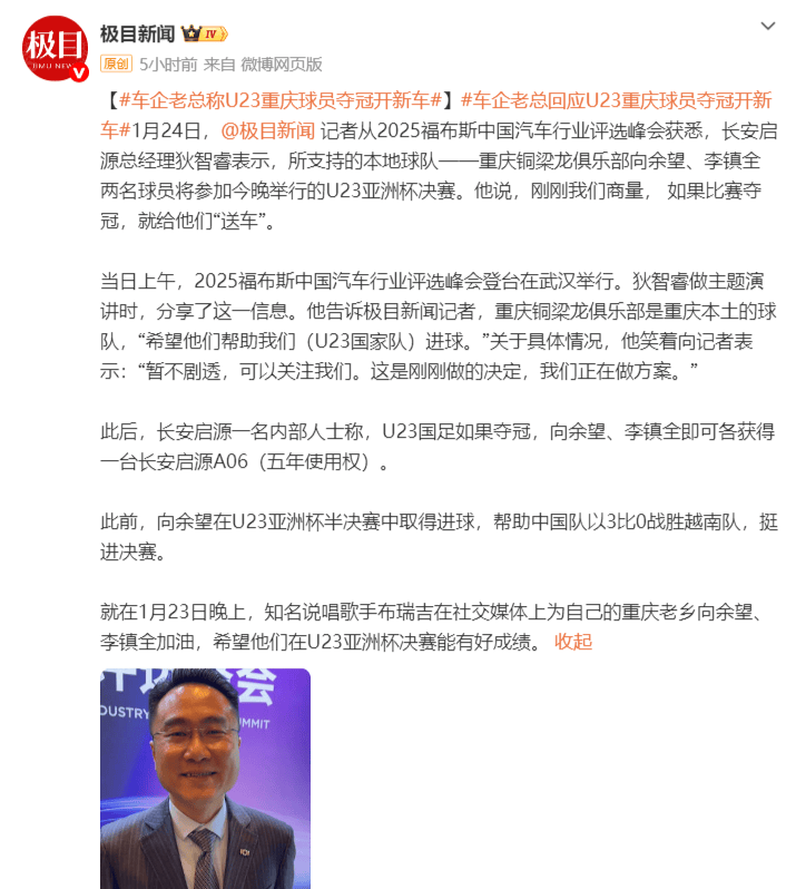 此外,一名内部人士称,U23国足如果夺冠,向余望、李镇全即可各获得一台某车型的五年使用权。
